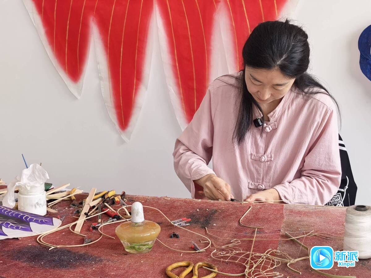 徐洋在節(jié)目中介紹濰坊龍頭蜈蚣風(fēng)箏。(視頻截圖)