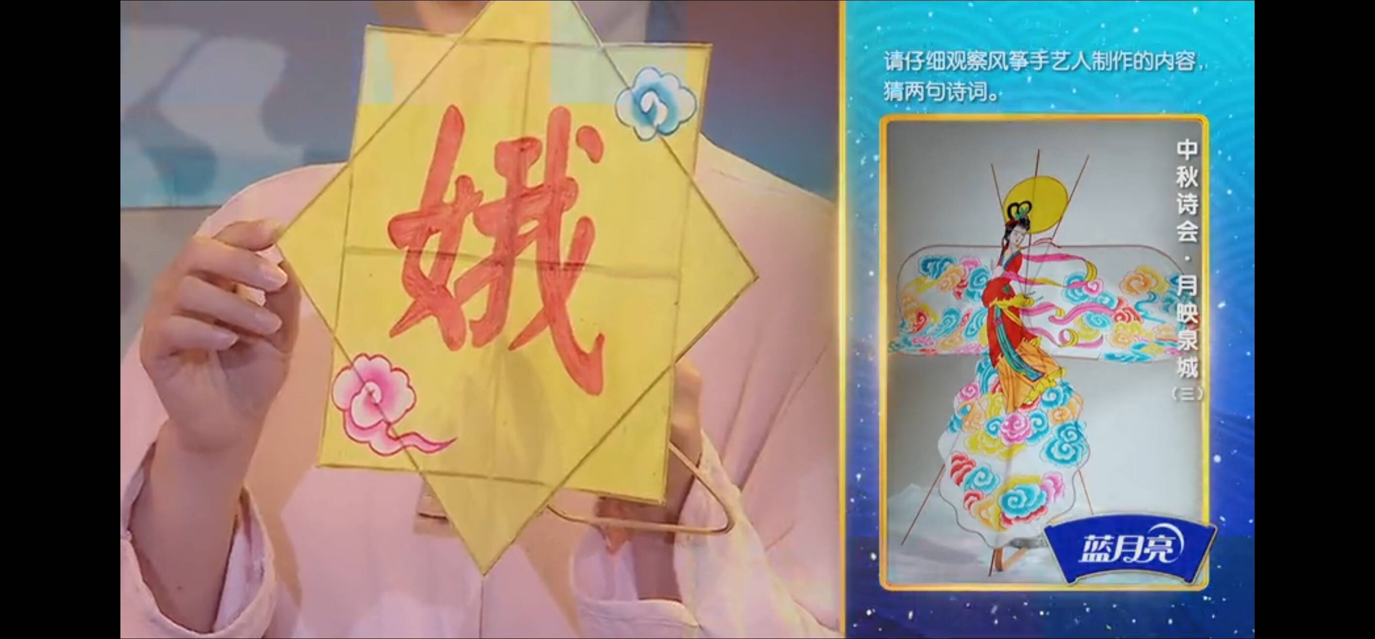 節(jié)目中,徐洋以龍頭蜈蚣風(fēng)箏為引,讓觀眾一睹濰坊傳統(tǒng)風(fēng)箏及濰坊國(guó)際風(fēng)箏會(huì)的風(fēng)采。在“巔峰對(duì)決”環(huán)節(jié)中,徐洋作為“畫(huà)中有詩(shī)題”出題人,介紹了濰坊風(fēng)箏的扎、糊、繪、放技藝,并以“嫦娥奔月”風(fēng)箏中的“娥”字為選手們出題?!版隙饝?yīng)悔偷靈藥,碧海青天夜夜心”等詩(shī)句,呈現(xiàn)出濰坊風(fēng)箏與經(jīng)典詩(shī)句的完美融合。